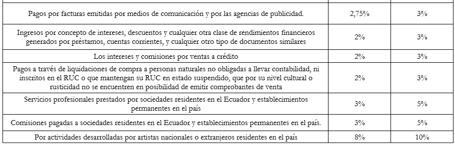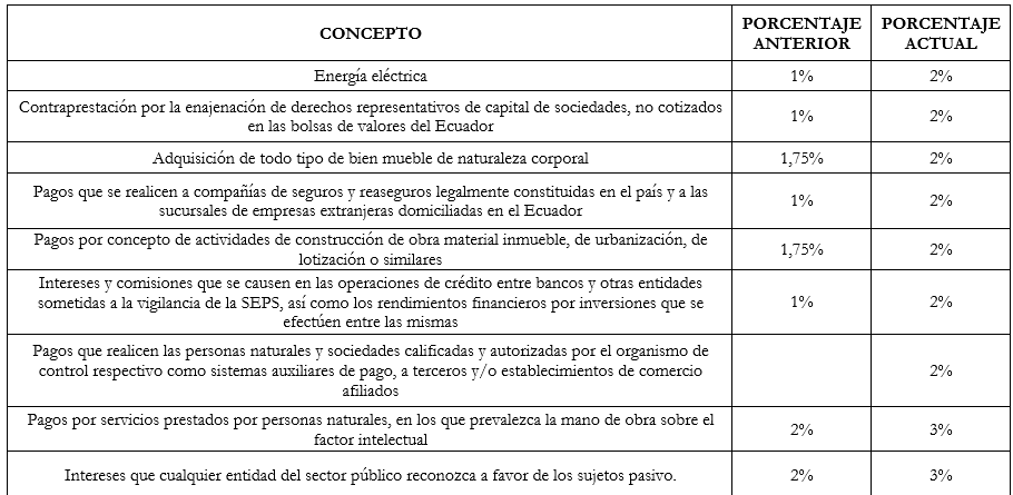 Mediante Resolución No. NAC-DGERCGC26-00000009, el Servicio de Rentas Internas actualizó los porcentajes de retención en la fuente del Impuesto a la Renta que deberán aplicar los contribuyentes especiales y demás agentes de retención, a partir del 1 de marzo de 2026, al momento de efectuar el pago o la acreditación en cuenta de ingresos gravados a favor de sus beneficiarios.